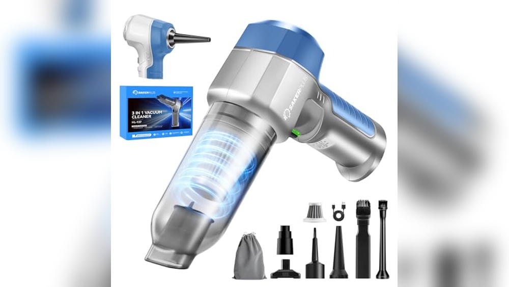 SakerPlus Mini Vacuum Cleaner, 3 in 1 Car Vacuum Cleaner High Power, 15000PA Powerful Suction, Air Duster, 7500mAh, Adjustable Small